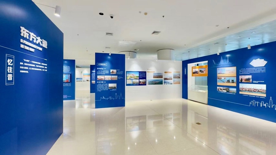 洋山深水港是世界首个建在外海岛屿上的离岸式集装箱码头。本次展览以“破局之路”“会战洋山”和“东方大港”三个板块,展示了洋山深水港区顺应时代发展和国家战略,开创了在远离大陆、依托岛礁复杂地形建设大型现代化集装箱枢纽港区的先河。