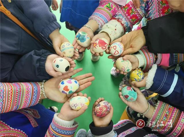 美食主题环节更是将课程推向高潮。孩子们先用画笔勾勒出花米饭的五彩斑斓、花鸡蛋的精致花纹,再亲手品尝软糯香甜的花米饭,参与热闹的碰彩蛋游戏,在味蕾与视觉的双重享受中,加深对壮族饮食文化的印象。课程最后,孩子们跟着老师学习壮族舞蹈,摆动身体、踏步转身,在欢快的节奏中展现对民族文化的喜爱。
