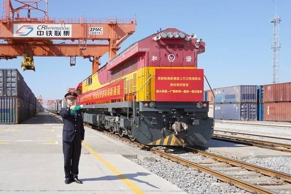 11月13日14时53分,伴随着一声嘹亮的汽笛,装载着43车来自澳大利亚进口的锂辉石等货物的西部陆海新通道X9578次铁海联运班列从钦州港东站驶出掌互通,缓缓开往重庆小南垭站。